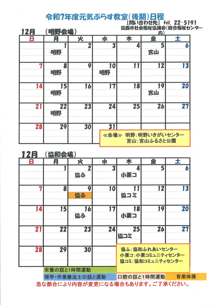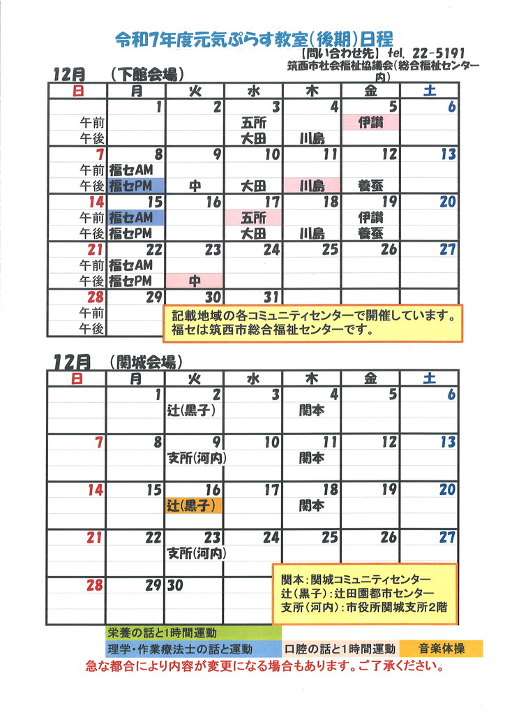 - 元気ぷらす教室 カレンダー(12月)